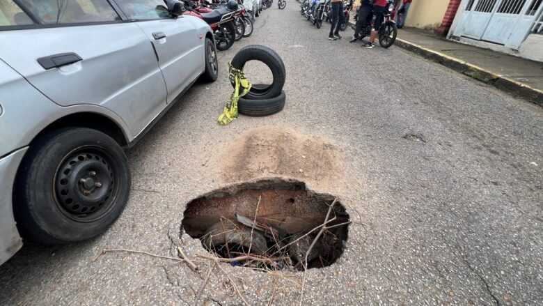 En plena calle Barreto de Maturín, un enorme hueco que persiste desde hace más de un año se ha expandido hasta convertirse en un riesgo crítico para los vehículos y los residentes de la zona.