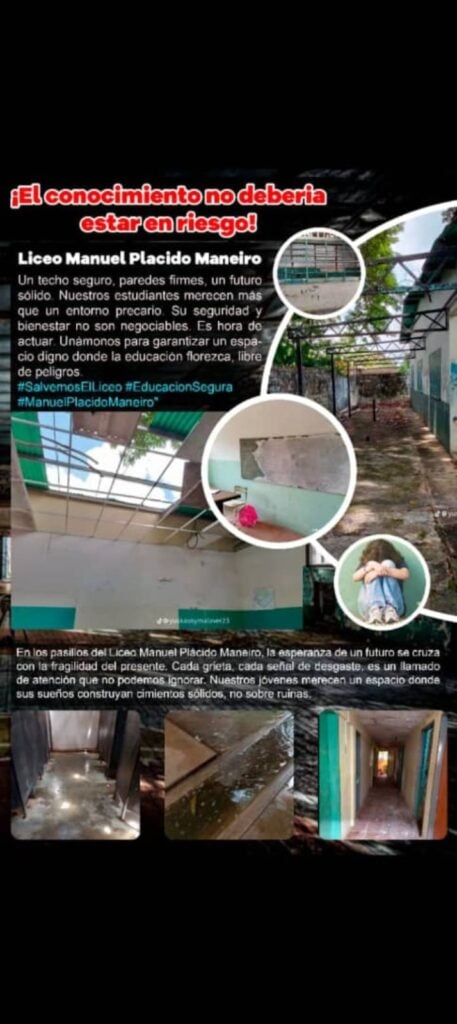 «Nuestros estudiantes merecen más que un entorno precario, su seguridad y bienestar no son negociables», afirmó Marcano. «Es hora de actuar, unámonos para garantizar un espacio digno donde la educación florezca, libre de peligros».
