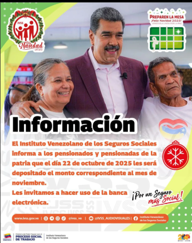El Instituto Venezolano de los Seguros Sociales (IVSS) anunció que este miércoles 22 de octubre se hará efectivo el pago de la pensión correspondiente al mes de noviembre.