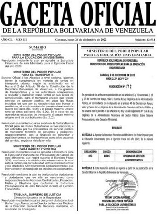 El texto exhortó a los alcaldes a nivel nacional, quienes tienen la competencia en materias de tarifas en transporte, a respetar y mantener como la cifra en sus áreas de competencias donde se preste el servicio de rutas urbanas Según la Gaceta Oficial 42.534 de fecha 26 de diciembre de 2022, quedó…
