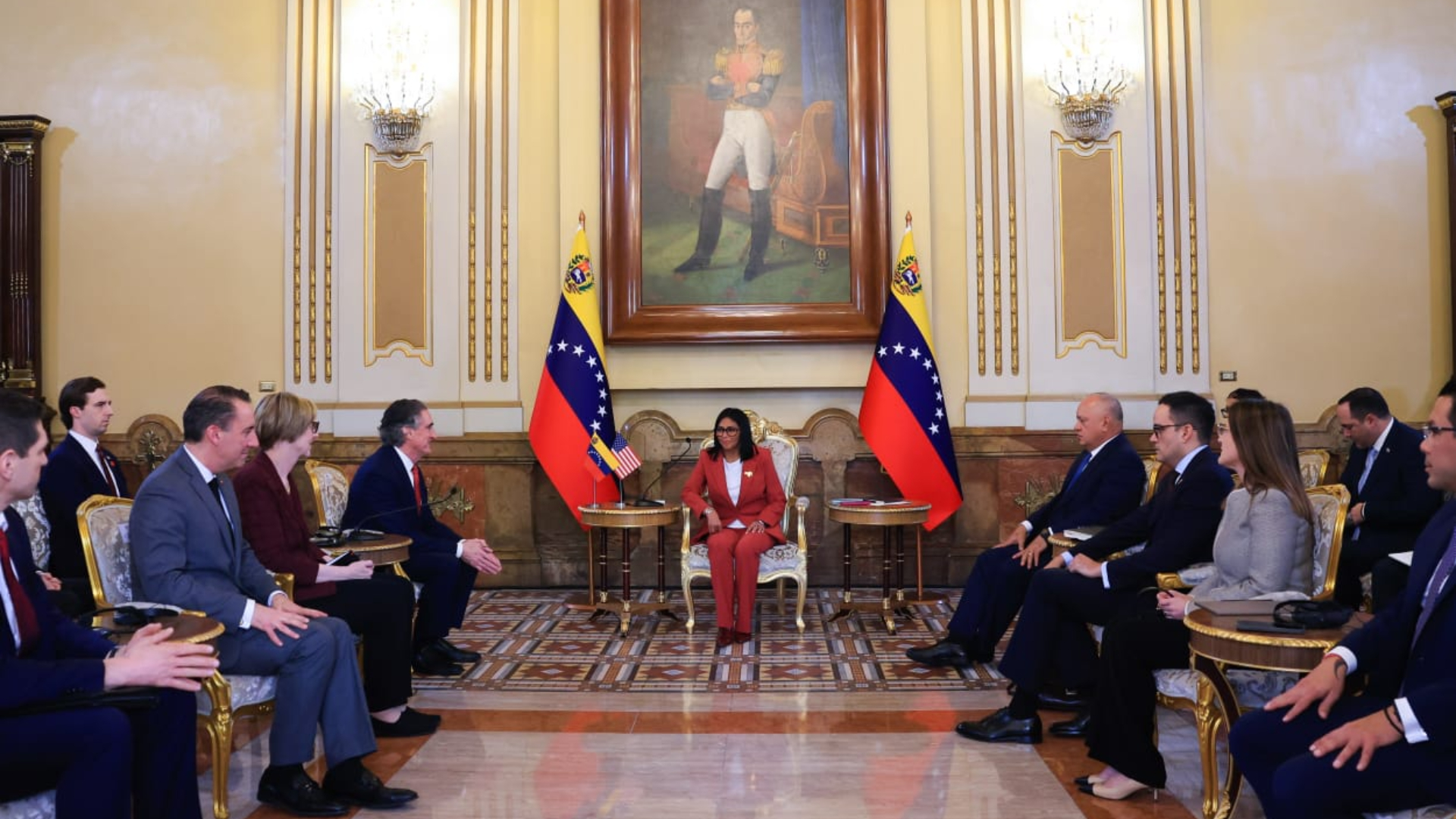 La presidenta encargada de Venezuela, Delcy Rodríguez, recibió este miércoles en el Palacio de Miraflores, Caracas, al secretario de Interior de Estados Unidos, Doug Burgum, para abordar temas de interés en la cooperación energética y fortalecer el sector minero.