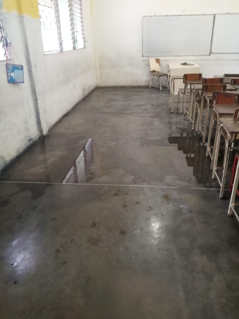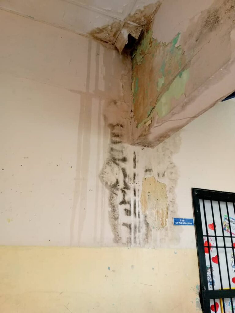 “Paredes y techos agrietados, el cielo raso de los salones se está cayendo y los baños están colapsados. Cuando llueve, cae más agua adentro que afuera. La situación es deprimente; hemos hecho de todo para que arreglen la institución y nada. Hace un año nos dijeron que no había recursos y que, cuando llegaran, la primera escuela a rehabilitar sería esta. Ya vimos que llegaron esos recursos y la Vicente Salias sigue empeorando”, detalló García.
