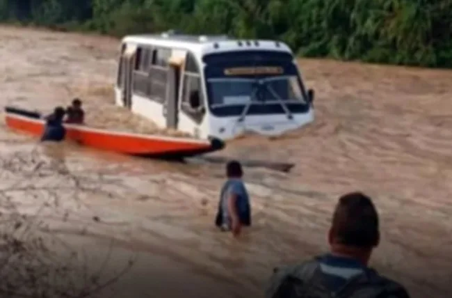 En horas de la mañana de este martes 06 de enero, una unidad de transporte público de la Línea Páez, control 65, fue arrastrada por el fuerte caudal del río Nulita, en el sector El Nula, estado Apure, tras el conductor intentar cruzar pese a las restricciones de seguridad.
