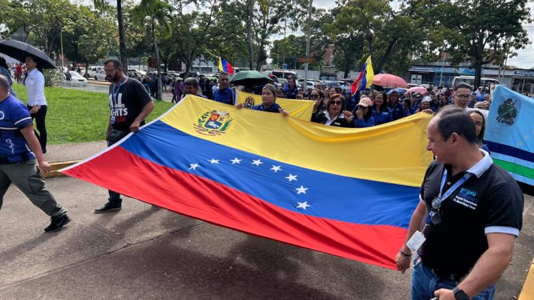«Estamos el sector salud rechazando las amenazas y todas las acciones que ha hecho el gobierno de Estados Unidos. Reclamamos la presencia de nuestro presidente Nicolás Maduro y de la primera dama en tierra venezolana», expresó Alzolay.