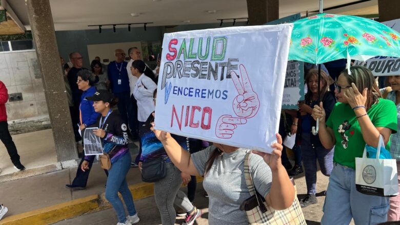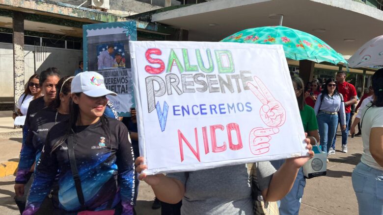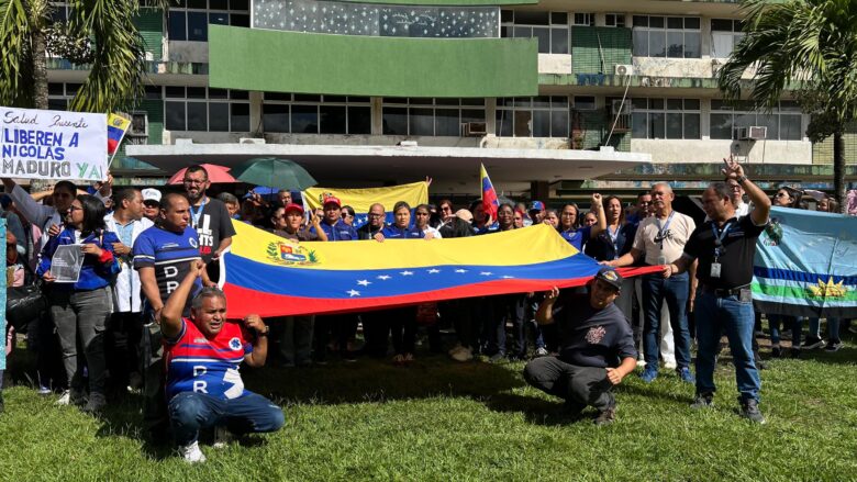 En una concentración realizada en las instalaciones del Hospital Universitario Dr. Manuel Núñez Tovar (Humnt), el personal sanitario del estado Monagas manifestó su rechazo ante la denuncia del traslado forzoso y retención del presidente de la República, Nicolás Maduro, y la primera combatiente, Cilia Flores.