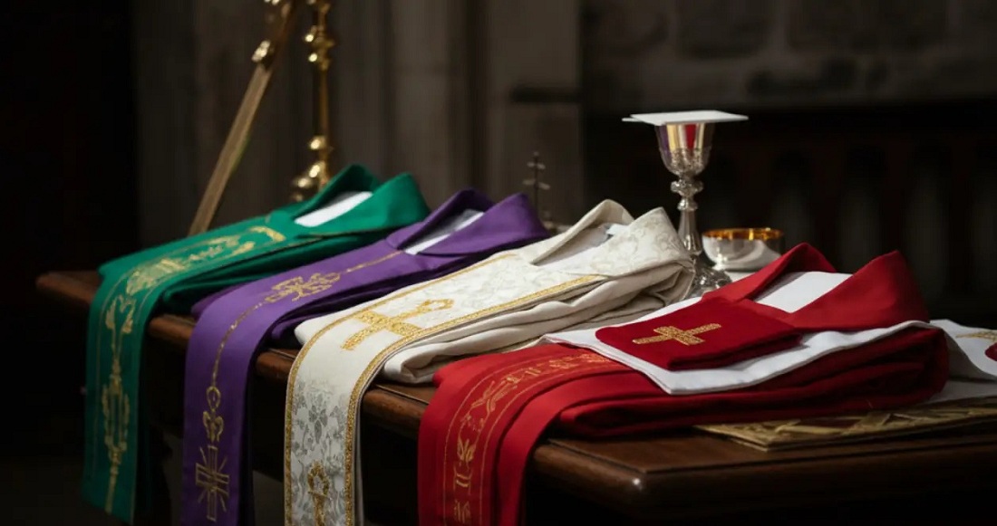 Con el inicio de la Semana Santa, las iglesias se transforman no solo en sus ritos y oraciones, sino también en su estética. La liturgia católica establece el uso de colores específicos en las vestiduras de los sacerdotes para reflejar el sentido espiritual de cada celebración: penitencia, sacrificio o gloria.