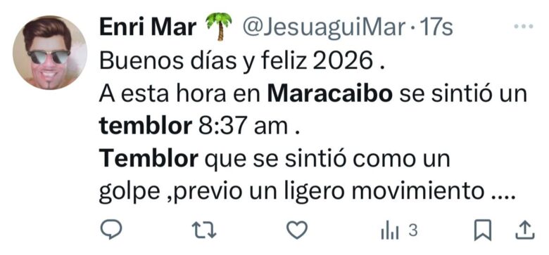 La capital zuliana inició el Año Nuevo con un susto sísmico. Alrededor de las 8:37 a.m. de este jueves 1 de enero, residentes de diversos sectores de Maracaibo reportaron a través de redes sociales un movimiento telúrico que generó alerta inmediata en la población.