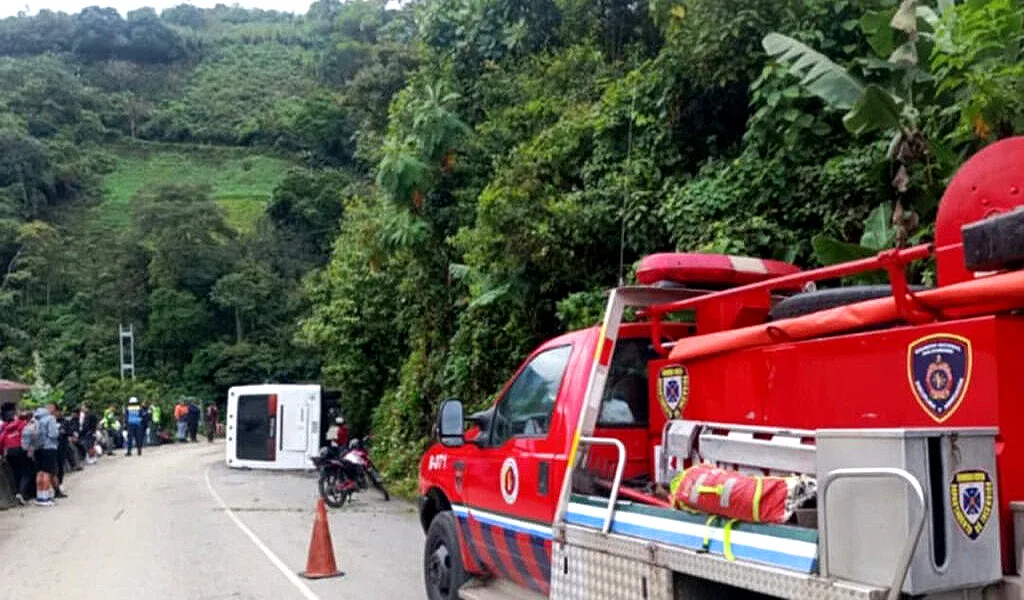 Un autobús que trasladaba a 23 integrantes del equipo Estudiantes de Mérida de Fútbol Sala se volcó en el sector La Raya del municipio Cardenal Quintero, con límite entre Barinas y Mérida.