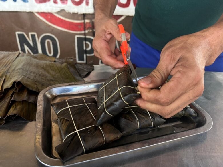 Estamos activos con la venta de hallacas desde el 1 de octubre hasta el 31 de diciembre, sin parar. Los preparativos particularmente los hago con anticipación. Mis compras de ingredientes las realizo antes que se acerque la temporada, para así tener menos gastos, por lo general, compro al mayor para abaratar los costos», afirma Orlando Ortiz, quien señala que los precios actuales de las hallacas varían según el tamaño.