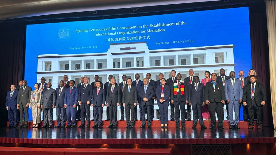 Asimismo, el ministro Gil manifestó que la OIMED tuvo su acto de inauguración y primera sesión del Consejo de Gobierno en su sede en Hong Kong. La OIMED nace de la visión de China y sus aliados para «llenar el vacío institucional existente en materia de mediación internacional».